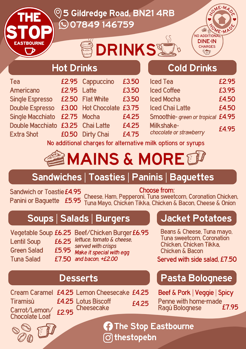 Welcome to The Stop Eastbourne, a delightful café nestled in the heart of Eastbourne at 5 Gildredge Rd, BN21 4RB. This charming establishment has quickly become a sanctuary for locals and visitors alike, thanks to the warm hospitality of owners Adriana and Luis. Their dedication to creating a cozy atmosphere is evident from the moment you step inside, where the inviting aroma of freshly brewed coffee greets you.