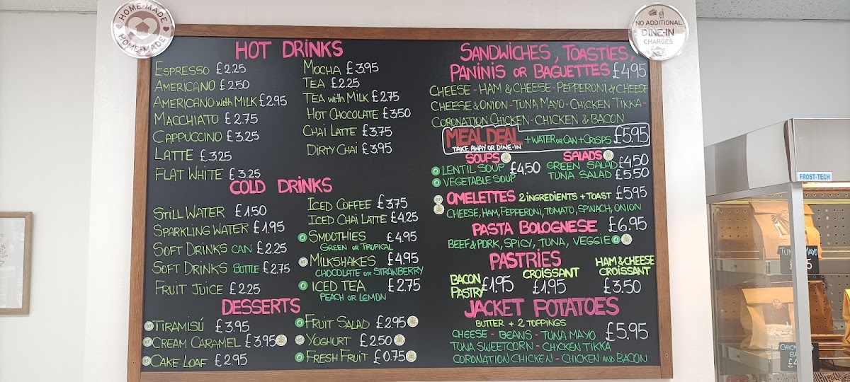 Indulge in their MAINS & MORE menu, which boasts an array of sandwiches and toasties, including mouthwatering options like the Chicken Tikka or Coronation Chicken. If you're a burger enthusiast, be sure to order the signature Beef/Chicken Burger, which is beautifully arranged with fresh lettuce, juicy tomatoes, and melty cheese, all served alongside crunchy crisps for only £9.95. Compliment your meal with a delightful treat from their pastry selection, highlighted by Adriana's exquisite cakes and cookies that have customers raving.